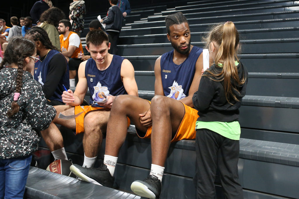 Dans le cadre du partenariat avec le Grand Périgueux, 50 enfants des Centres Aérés de Razac sur l’Isle et Basillac, sont venus à la rencontre des joueurs du BBD. Ils étaient venus assister à l’entraînement, mais une séance de dédicace surprise leur a été réservée, pour le plus grand plaisir de tous. Les enfants ravis et un peu intimidés par ces grands gaillards sont donc partis à la pêche aux autographes dans les tribunes du Palio. Ils ont pu observer ensuite, studieux, les pros répéter leurs gammes.
