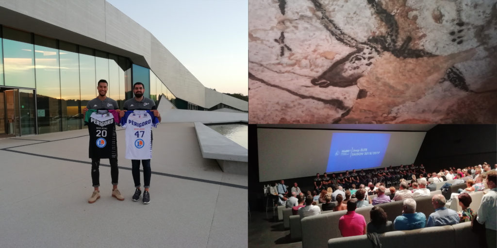 Le 10/09, l’équipe du Boulazac Basket Dordogne était présentée à nos partenaires dans l’auditorium de Lascaux IV. La présentation était précédée d’une visite du site, l’occasion pour les sponsors et pour l’effectif de prendre conscience des liens forts et étroits entre le Boulazac Basket Dordogne et son territoire. Les joueurs auront à cette occasion pu comprendre le pourquoi des figures pariétales qui ornes leurs maillots et en observer l’origine dans la réplique de la grotte de Lascaux.